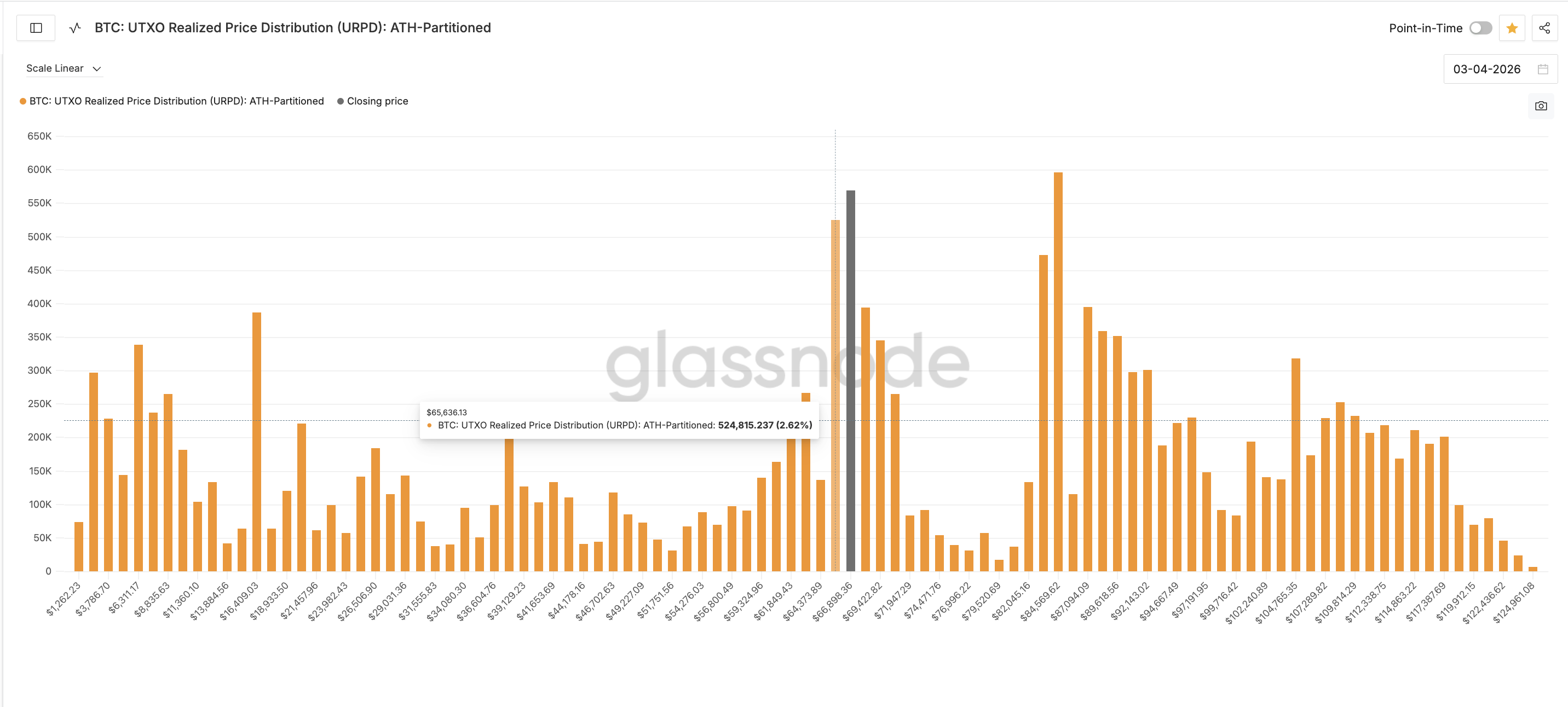 The UTXO Realized Price Distribution (URPD), which highlights key supply clusters from Glassnode reveals exactly where that pain could materialize. The single largest near-term supply cluster sits at $65,636, where approximately 524,815 $BTC representing 2.62% of the total supply last changed hands. A second cluster follows at $64,373 with 0.68% of supply.