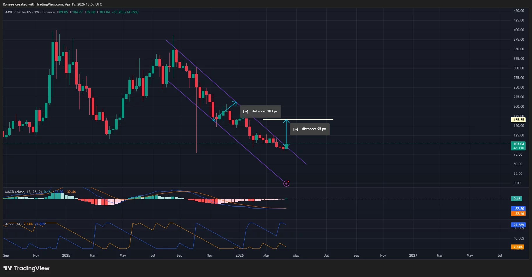 However, the Aroon down reading at 92.86% remains far above the Aroon up line, which indicates some negative momentum still lingers in the background. As such, Aave token could face a brief period of consolidation or a minor retest of the breakout zone before the next major leg up.