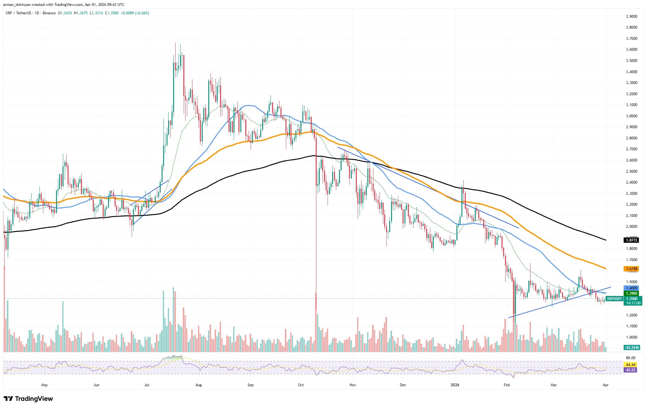 The current support zone surrounding recent lows continues to be the critical level. A recovery attempt toward the $1.50-$1.60 range, where significant resistance is located, will be made possible if $XRP maintains this structure while user activity stays high. The first clear indication that momentum is changing would be a break above that area.
