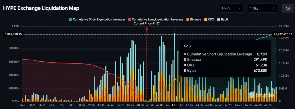 The Liquidation Map highlighted key levels at $40.30 and $42.30, where traders remained overleveraged.
