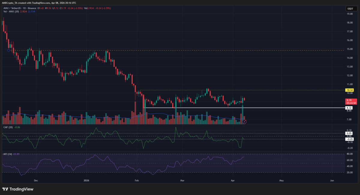 Avalanche [$AVAX] rallied by 13.71% in just under 18 hours on Tuesday, 7 April. The move from $8.46 to $9.62 came alongside heavy spot volume. The announcement that the Chicago Mercantile Exchange (CME) Group would launch Futures tied to Avalanche in May likely buoyed prices.