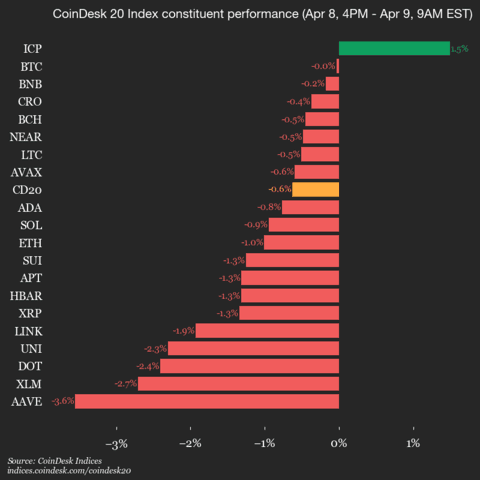 CoinDesk Indices presents its daily market update, highlighting the performance of leaders and laggards in the CoinDesk 20 Index.