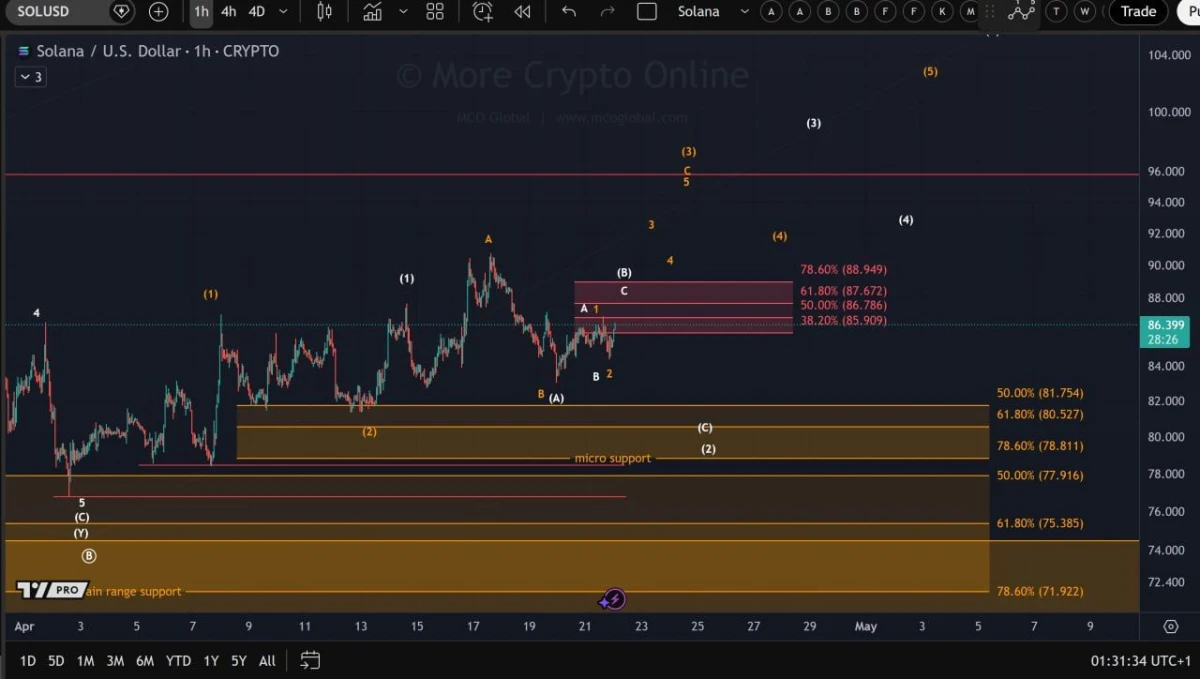 Solana Holds Near $86 as Wave B Tests Resistance Zone