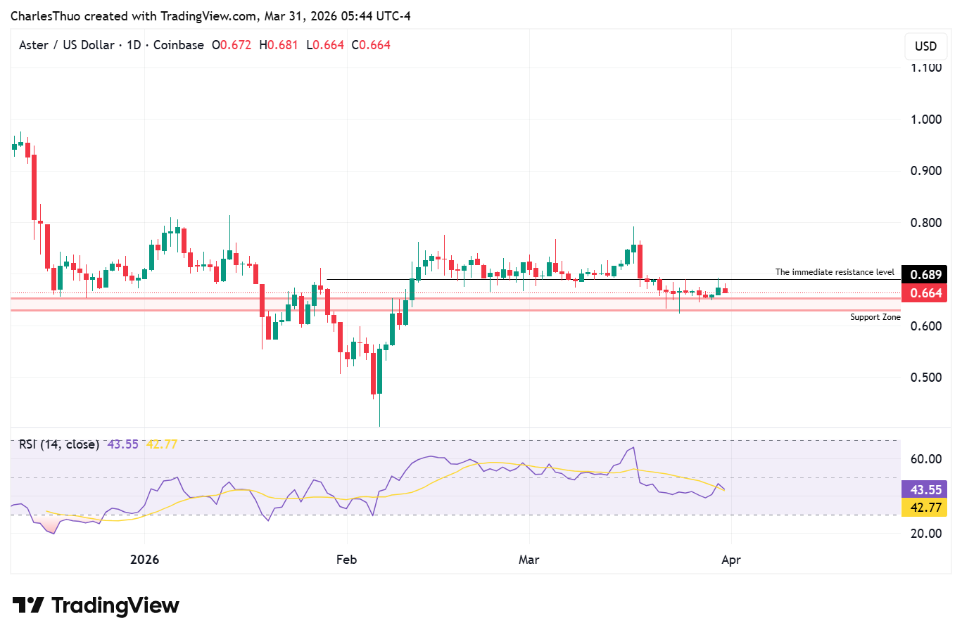 At the time of writing, $ASTER is trading near the $0.66 level, holding a key support zone while attempting to build momentum in a cautious broader market.
