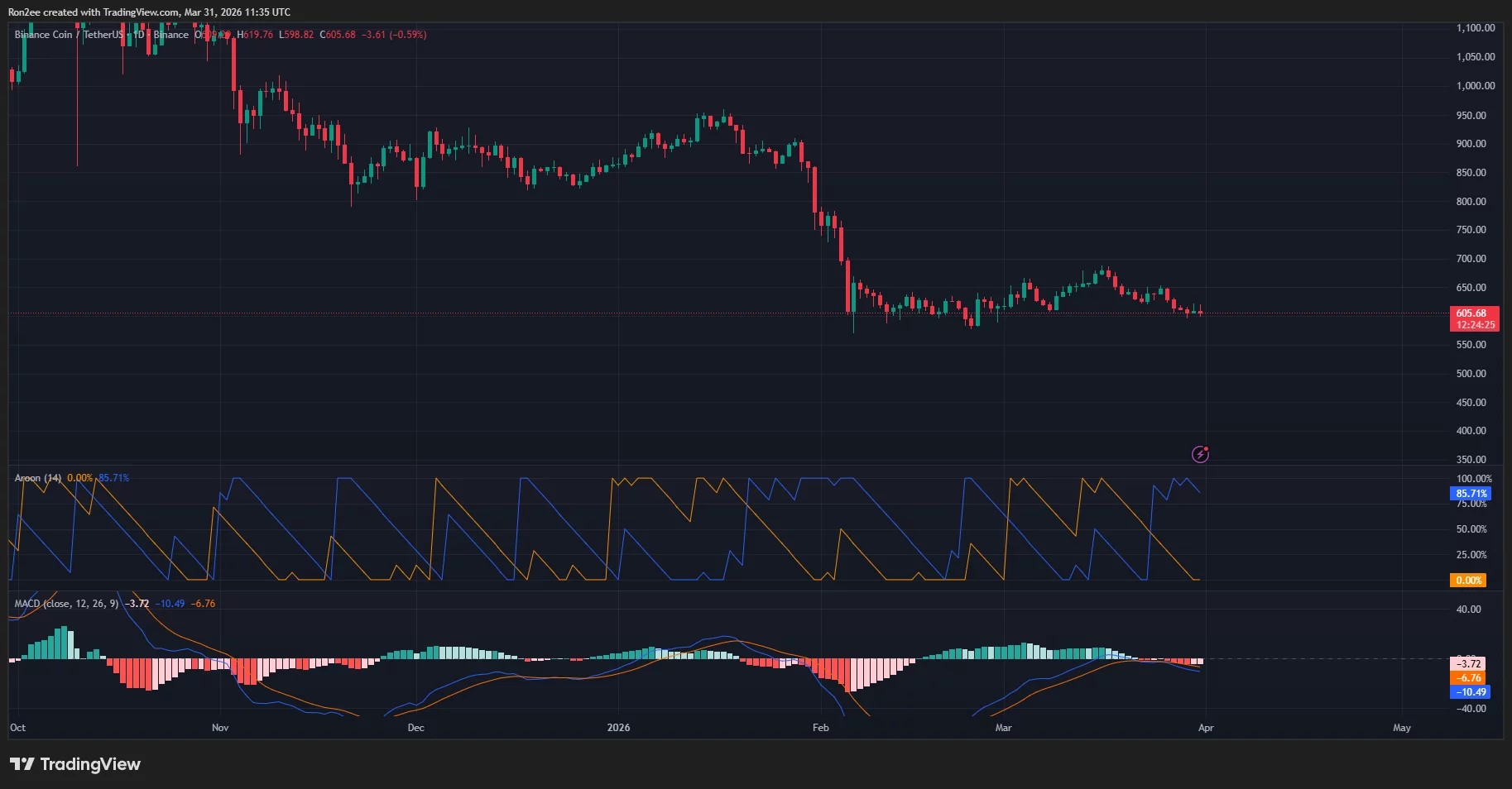 On the daily chart, $BNB price is trading at $602.5 at press time, near the strong pivot reversal level of the Murrey Math lines at $625.