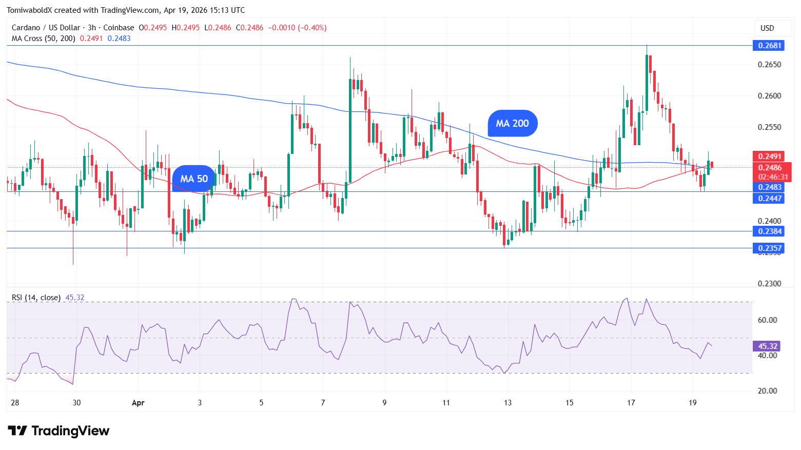 Cardano has been oscillating between the daily MA 50 at $0.257 and the $0.23 support for the past few days.