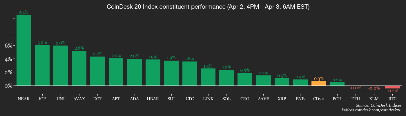 • CoinDesk 20 is up 0.26% at 1,902.32 (24hrs: +0.80%)