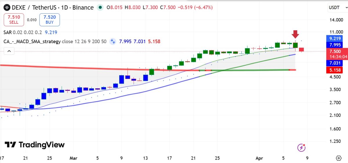 - $DEXE lost the $8 support and dropped sharply, confirming a clear shift in the short-term trend.