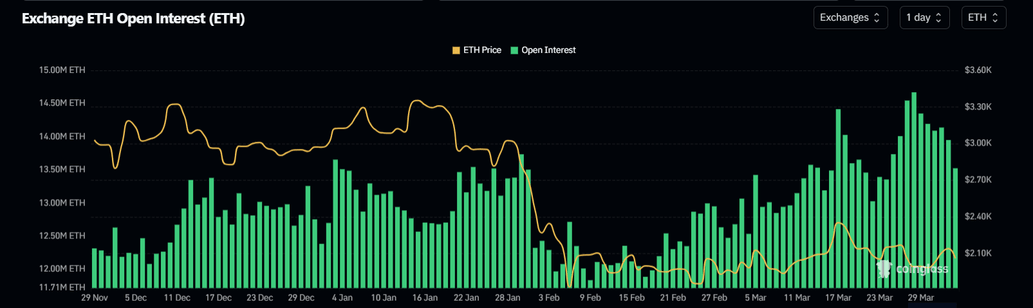 - Open interest has dropped to a one-week low of 13.52 million $ETH.