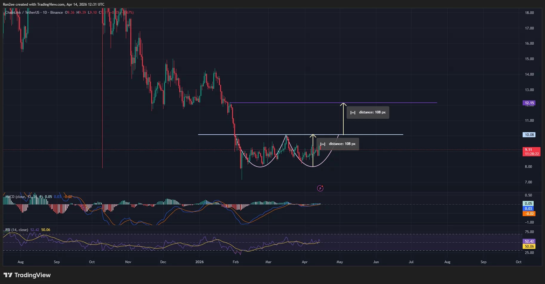 On the daily chart, Chainlink price appears to be completing a double bottom pattern, which is one of the most popular bullish signs in technical analysis. A breakout from the neckline of such a pattern has historically been followed by strong upside in a related asset for multiple sessions.