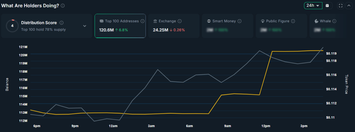 However, the top 100 wallet addresses have increased their holdings by 6.83%, indicating growing demand from large and long-term holders. In the crypto market, accumulation by large holders typically signals a potential buying opportunity for the asset.