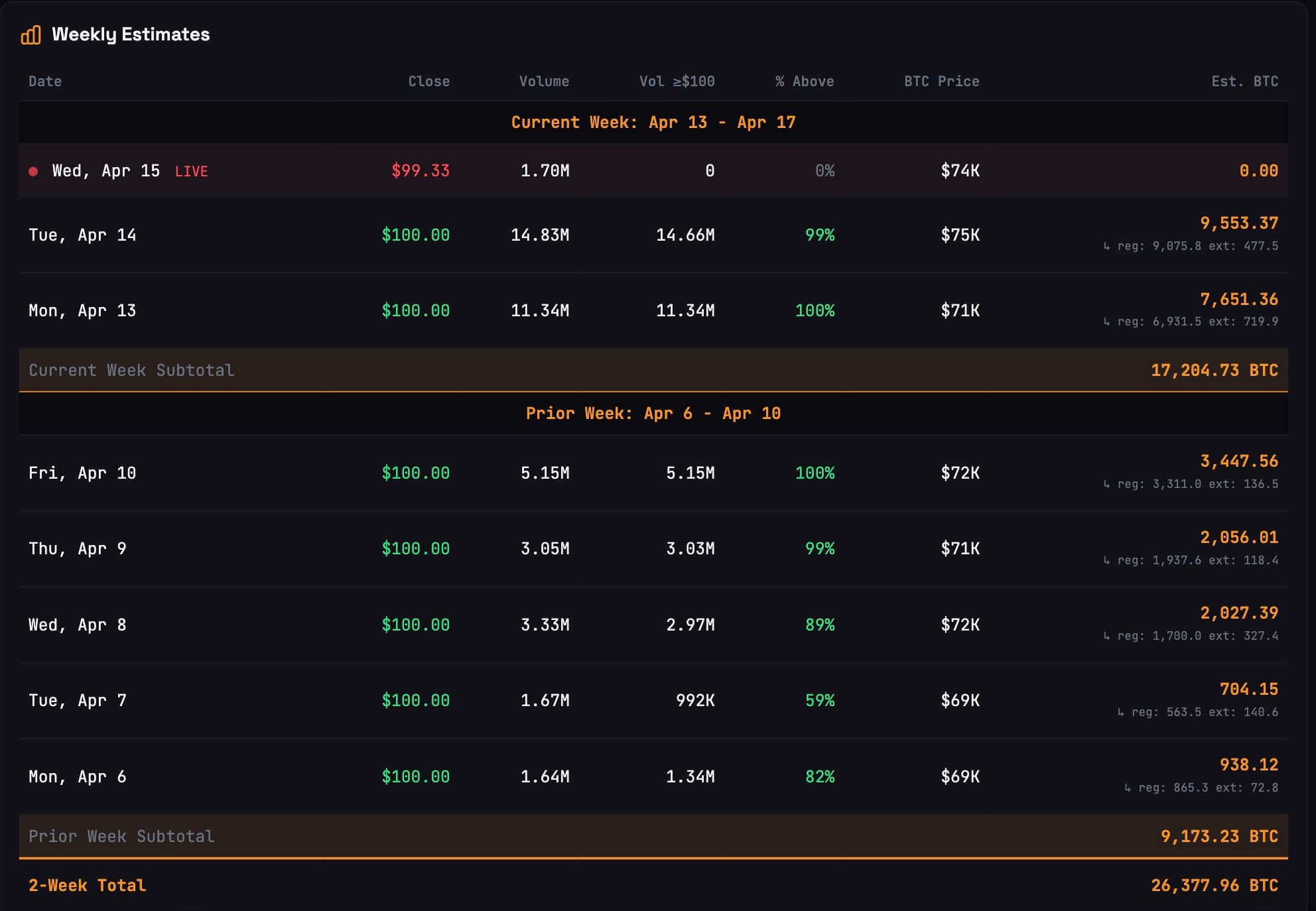 According to this week’s report, starting April 13, the STRC mechanism continues converting market liquidity into direct Bitcoin purchases. Over the current week, funds have already been raised to acquire 17,284.73 $BTC, according to strc.live data.