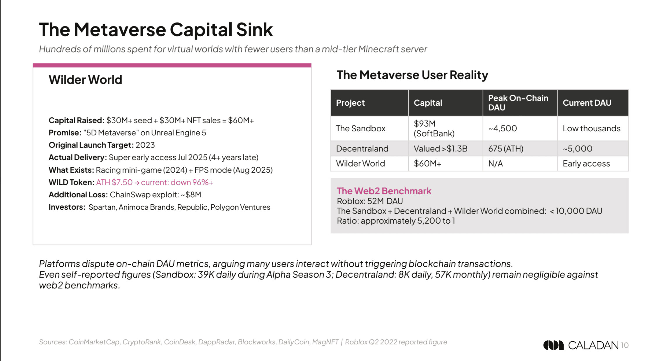 The most telling data point may be where the money went instead. Gaming commanded 62.5% of all Web3 venture investment in 2022; by 2025, its share had collapsed to single digits as AI, real-world-asset tokenization and layer-2 infrastructure absorbed the displaced capital.
