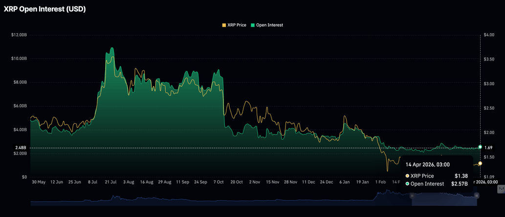 $XRP is also experiencing a mild influx of retail capital, as futures OI rises to $2.57 billion on Tuesday, from $2.38 billion the previous day.