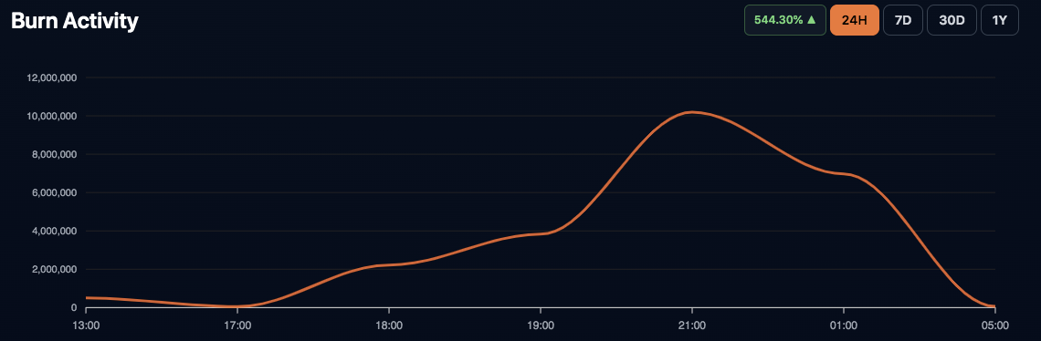 However, the remaining supply still exceeds 585 trillion tokens, limiting the immediate impact of burns. Recent burn activity remains modest, indicating that deflation alone may not drive price recovery.