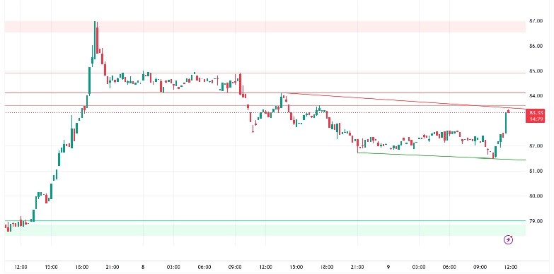 A quick slide toward the $79.00 structural floor is likely if the green ascending support line near $82.00 fails to hold. Our price prediction suggests that if the price falls below this level, it could fall even further to a correction toward $73.00.