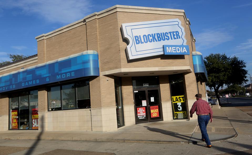 A customer enters a Blockbuster store in Dallas, Texas, U.S., on Wednesday, Dec. 4, 2013. Blockbuster announced at the beginning of November that it would be closing all stores as well as ending domestic retail and DVD by mail services. Photographer: Mike Fuentes/Bloomberg