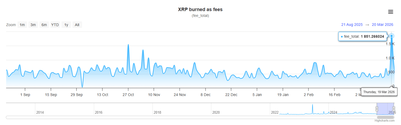 Specifically, since August 2025, the network had maintained an average of 500 $XRP burned per day. The jump to 1,851 marks a 270% increase from that level.