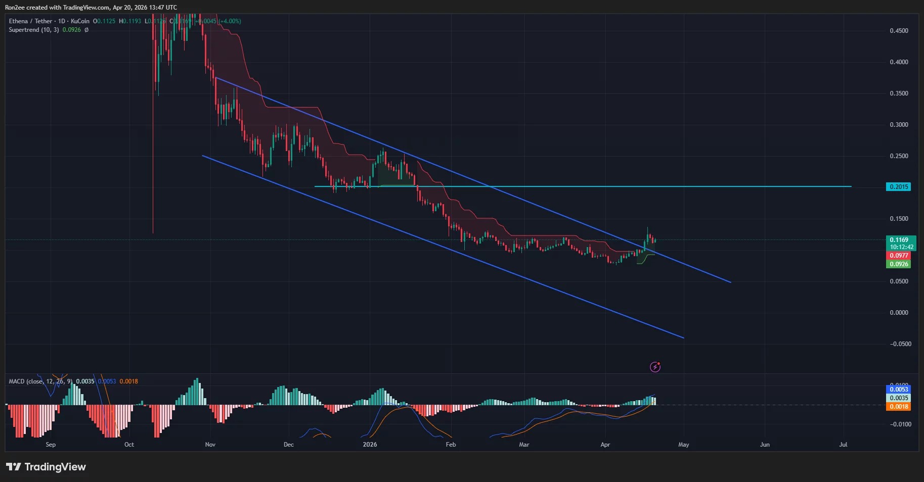 According to data from crypto.news, Ethena ($ENA) price rallied to a 10-week high of $0.134 on Saturday before settling at $0.116 at the time of writing. The token’s market cap stood at $1.02 billion with a daily trading volume of $126 million.