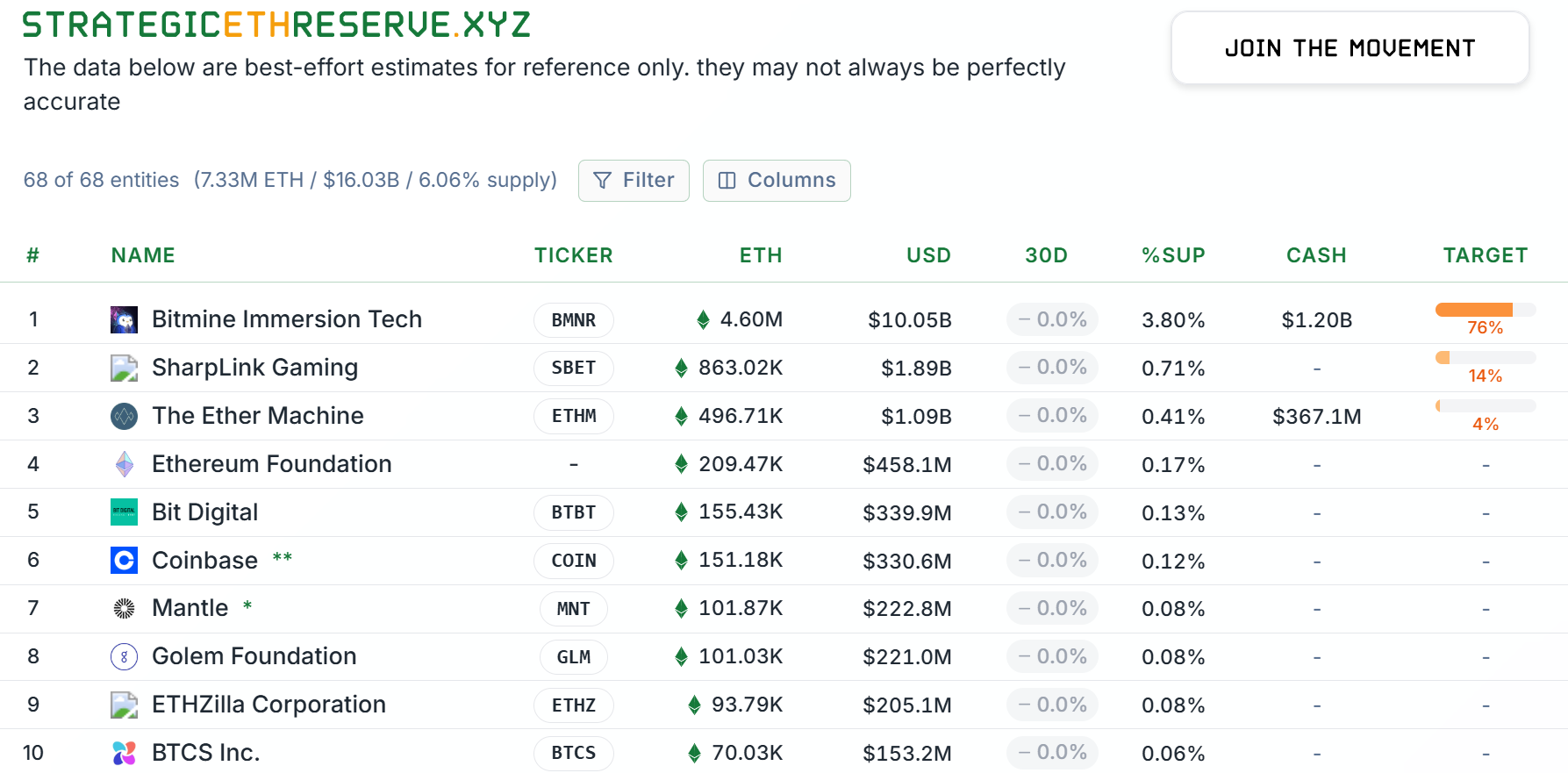 Bitmine is the largest corporate Ether holder with 4.6 million $ETH currently valued at over $10 billion, while SharpLink Gaming is second, with 863,000 Ether worth $1.89 billion, data from StrategicEthReserve shows.