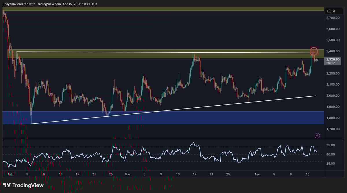 The immediate test is whether $ETH can break and hold above the $2.4k zone on a daily close and build above it. The previous breakout attempt in mid-March faded quickly upon contact with this area.