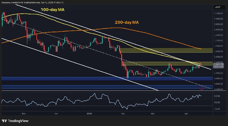 Yet, if a confirmed breakout and hold above it occurs, it opens the door toward the $2.8k resistance zone. Meanwhile, a rejection and drop back inside the channel would be a discouraging false breakout, with the $1.8k area remaining the critical floor below.