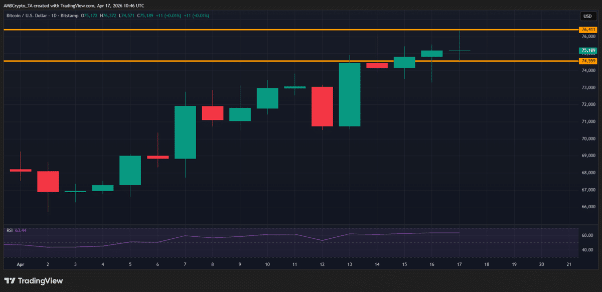 Technically, Bitcoin’s [$BTC] push toward $76k shows this momentum may already be playing out.